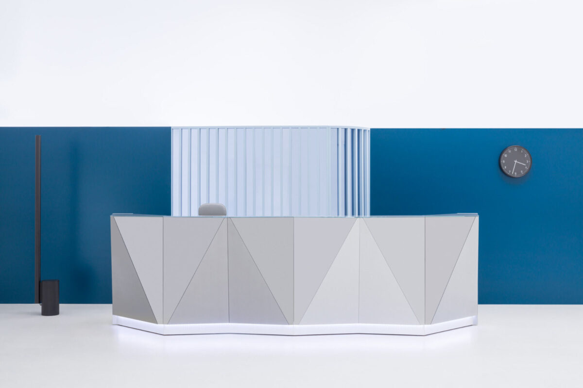 Die Empfangstheke Alpa setzt in jedem Empfangsbereich ein architektonisches Statement. Ihre glasverkleidete Front und die sanft beleuchtete Linienführung verleihen dem Raum eine ruhige, hochwertige Atmosphäre. Dank der modularen Bauweise lässt sich Alpa flexibel als gerade oder winkelförmige Lösung gestalten und individuell an Raumgrößen und Arbeitsabläufe anpassen. Hochwertige Materialien wie LACOBEL-Glas und Melaminplatten sorgen für Langlebigkeit und eine leicht zu reinigende Oberfläche.